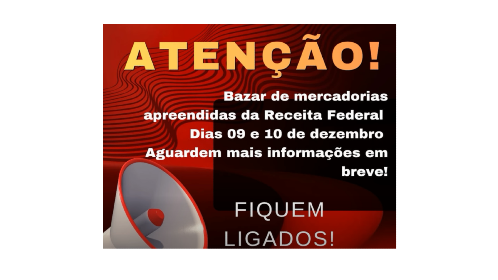 Atenção bazar de mercadorias apreendidas da receita federal, dias 09 e 10 de dezembro, Aguardem mais informações em breve!