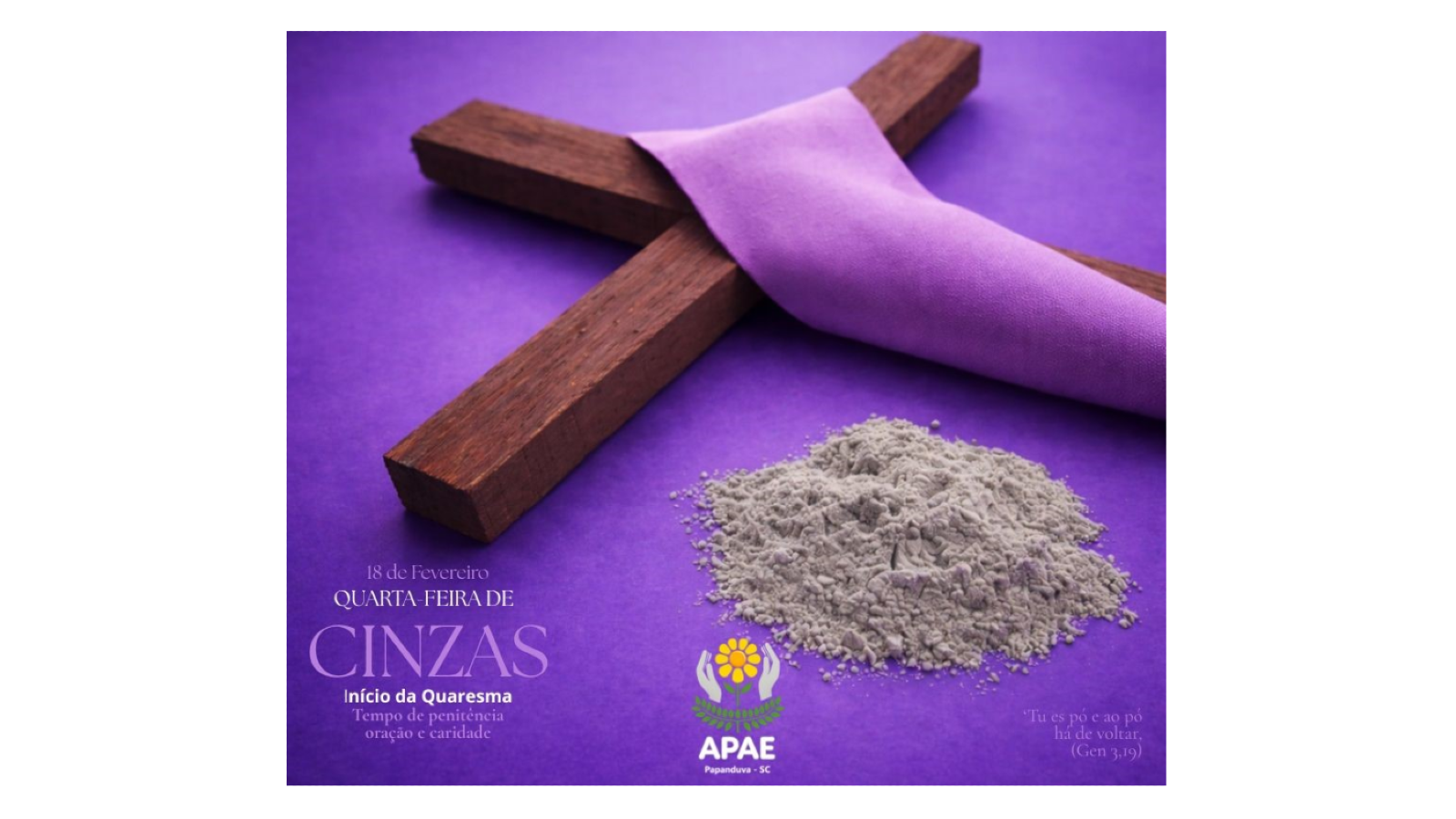 Quarta-Feira de Cinzas - Início da Quaresma, tempo de penitência oração e caridade.